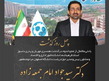 به همین مناسبت متنی از سوی دکتر محمد رضا حیدری عضو هیات علمی دانشکده علوم اداری و اقتصاد به مناسبت چهلمین روز درگذشت مرحوم دکتر امام جمعه زاده به شرح زیر منتشر شد: